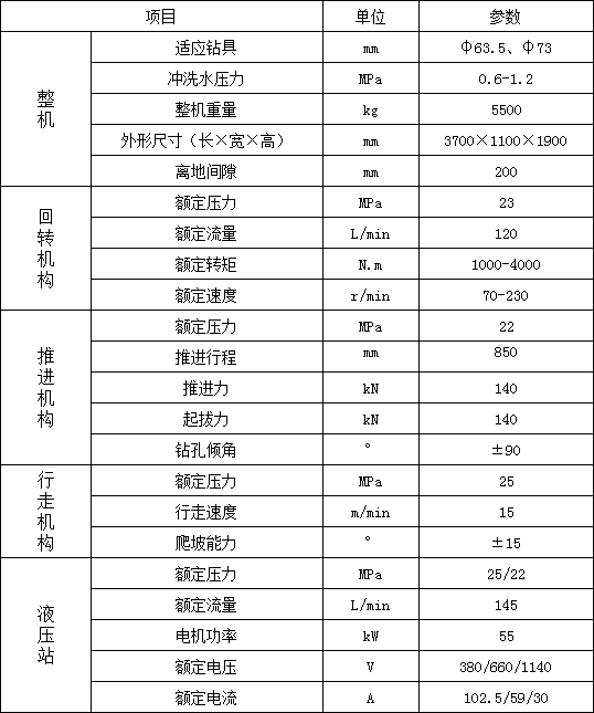 1. 履帶行走,大大提高移鉆、穩鉆的效率,顯著減輕工人的體力勞動強度;